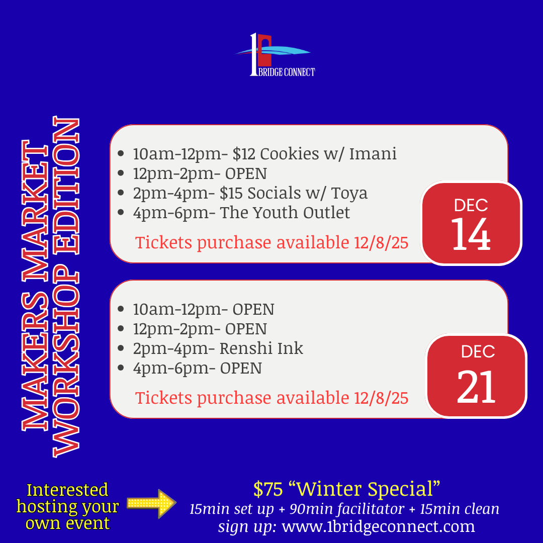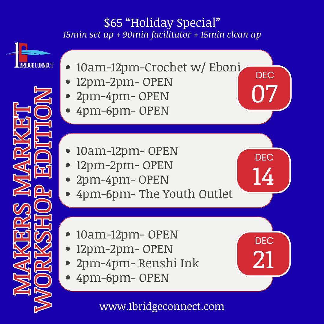 Join the 1Bridge Connect Learn & Create Series and lead engaging hands-on workshops in creative skills, culinary arts, wellness, lifestyle, and digital know-how.