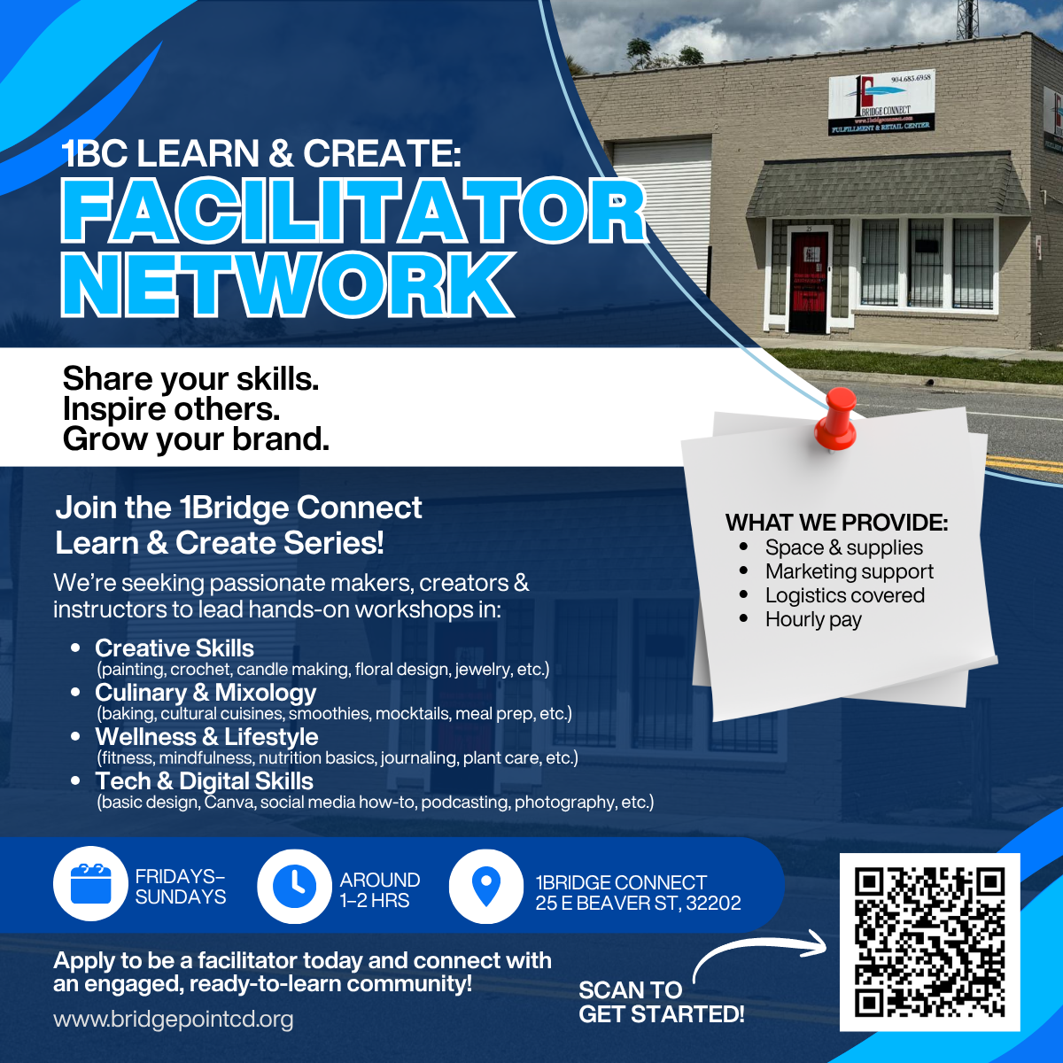Join the 1Bridge Connect Learn & Create Series and lead engaging hands-on workshops in creative skills, culinary arts, wellness, lifestyle, and digital know-how.