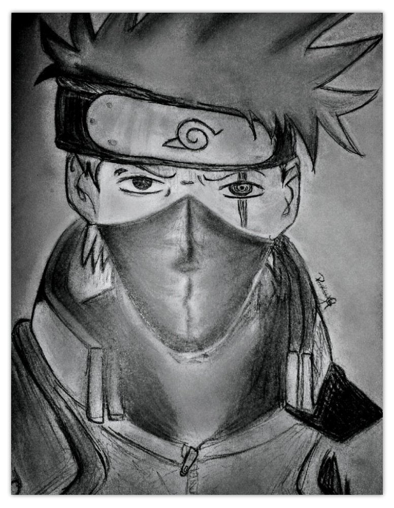 A pencil illustration of Kakashi with dramatic shading that captures the complexity and intensity of his personality.
