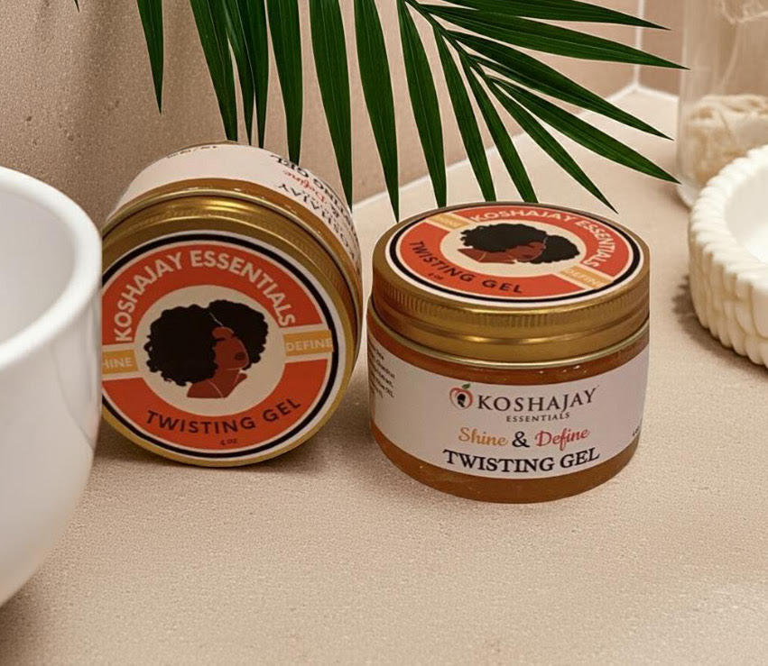 Achieve flawless styles with Koshajay Essentials Shine & Define Braid, Twist & Loc Gel — a professional-grade natural hair styling gel crafted to hydrate, define, and strengthen every strand.